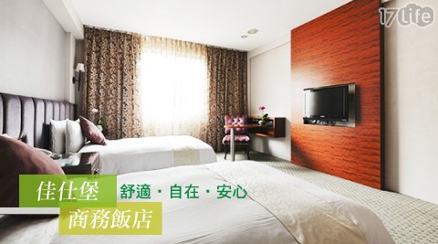商品訊息簡述: 只要1,888元起即可享有【佳仕堡商務飯店】原價最高6,200元一起回嘉專案:(A)商務兩人客房(一大床/兩單床,視現場房況為主)住宿乙晚/(B)豪華四人房住宿乙晚,專案皆含:自助式早餐+健身房+Wi-Fi+停車場。